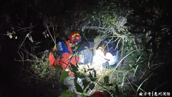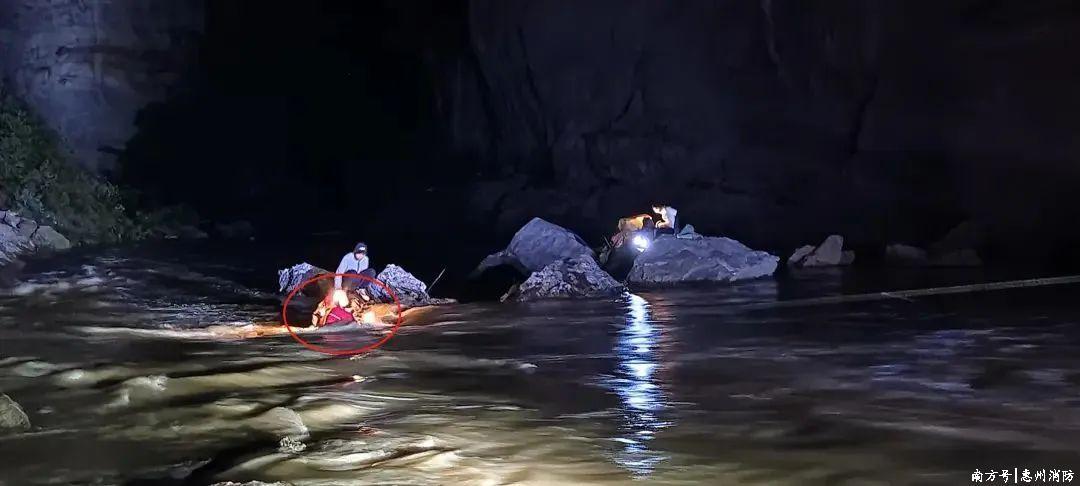 贵州黔西南,暴雨致溶洞内突发大水,一对在其内探险的情侣被困,消防员通过绳索牵引的方式将两人救出。